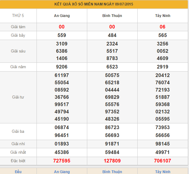 Thống kê kết quả xổ số ba miền Bắc Trung Nam thứ 5 ngày 16-07
